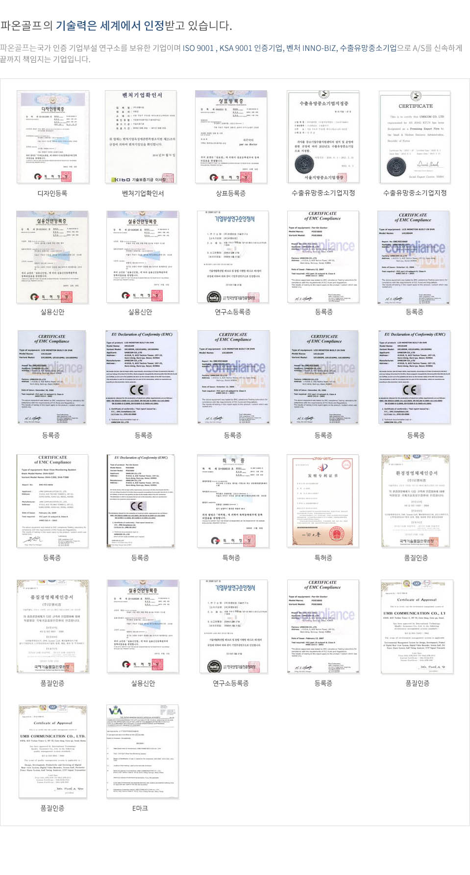 HOME > 회사소개 > 특허 및 인증
